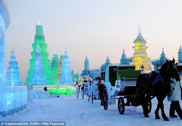 În Harbin, oraş situat aproape de graniţa cu Rusia, iernile sunt geroase, dar uscate, iar gheaţa se găseşte în abundenţă, în jurul fluviului Songhau.